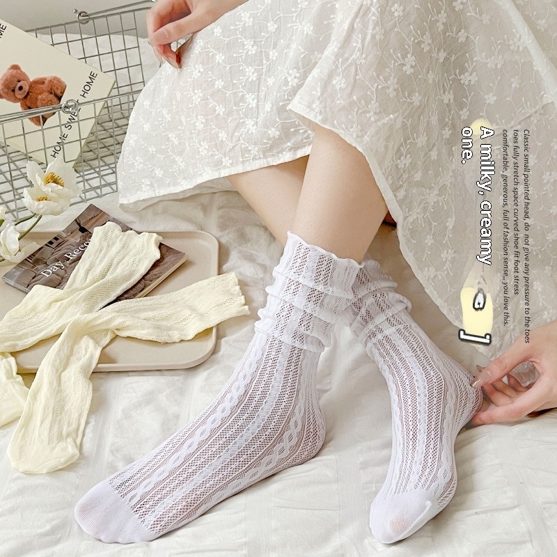 Colors: Black Heart-Print Crew Socks, White Heart-Print Crew Socks, Beige Heart-Print Crew Socks