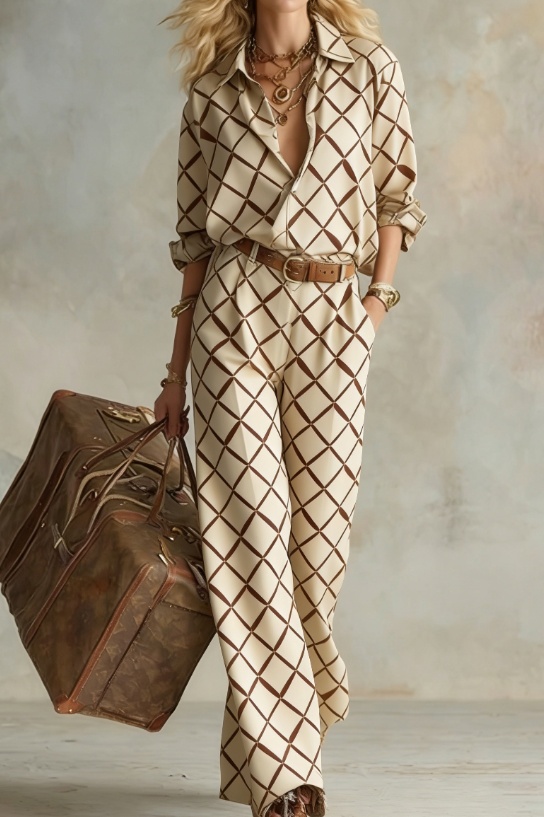 Fit: Loose shirt + wide-leg pants set