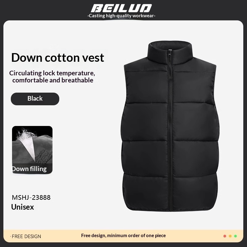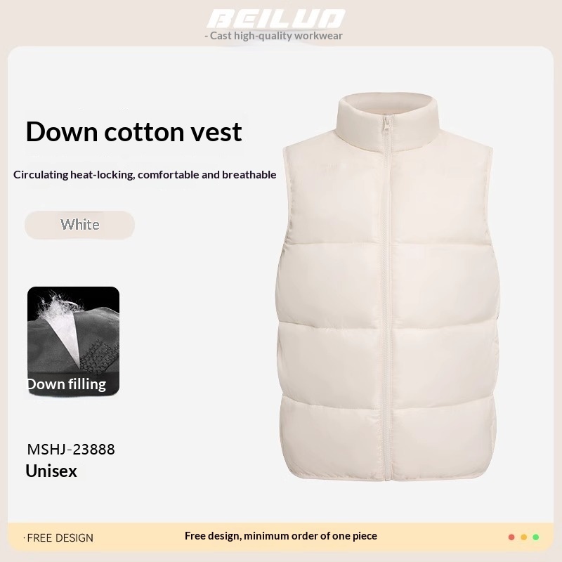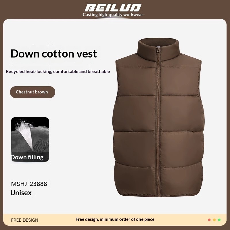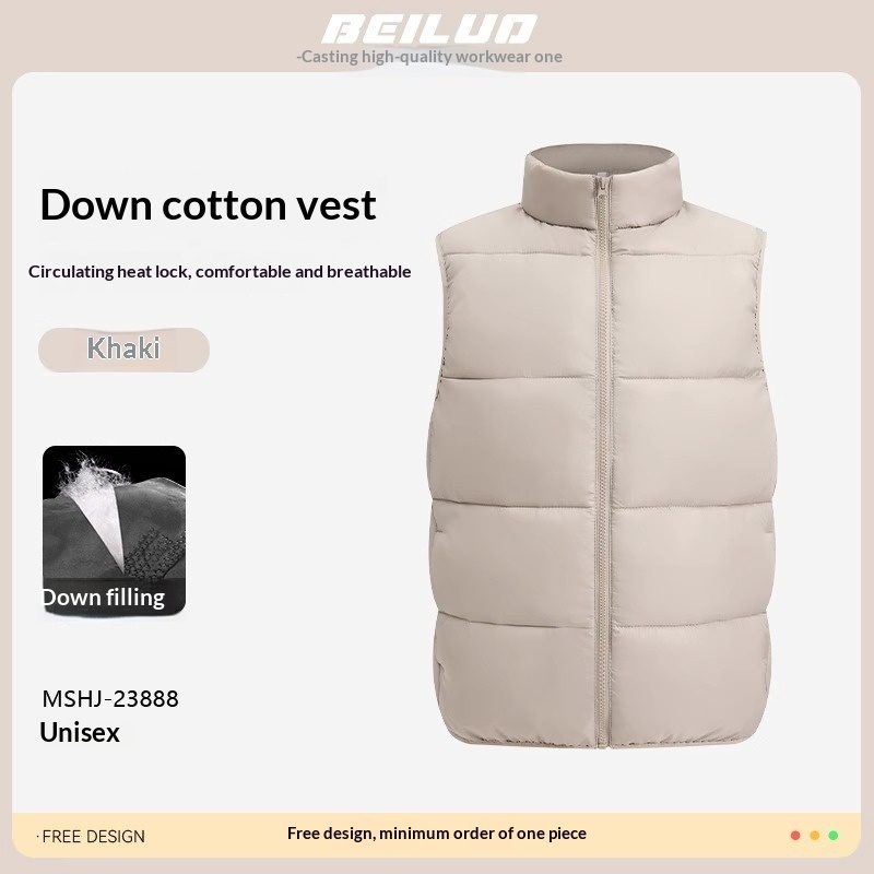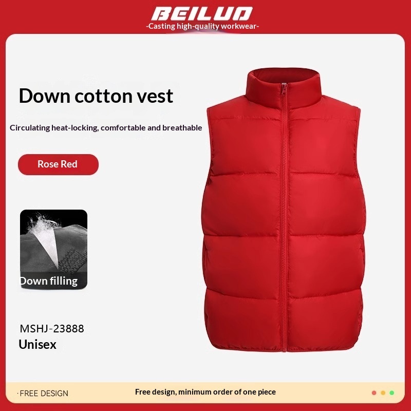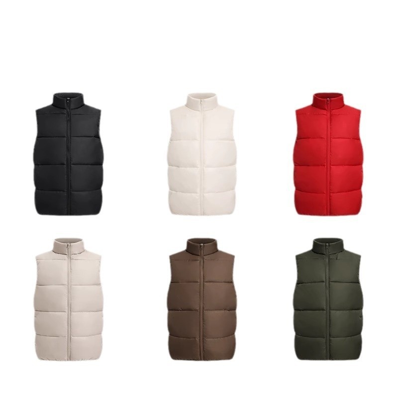 Colors: MSHJ-23888 Down-Padded Vest Rose Red, MSHJ-23888 Down-Padded Vest Black, MSHJ-23888 Down-Padded Vest White, MSHJ-23888 Down-Padded Vest Coffee Brown, MSHJ-23888 Down-Padded Vest Khaki, MSHJ-23888 Down-Padded Vest Pine Green